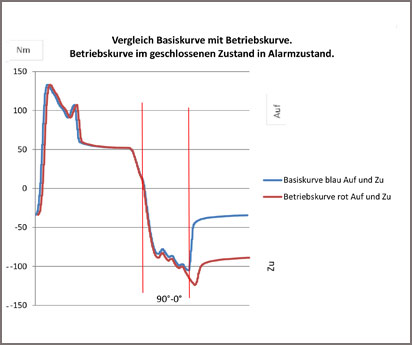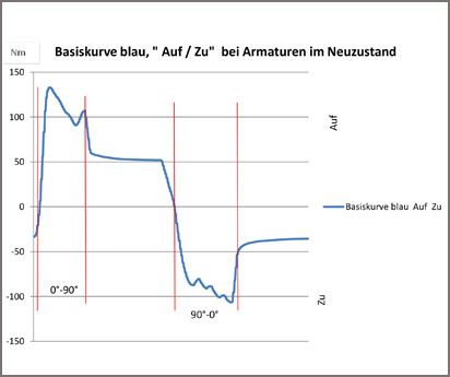Bei jeder Bewegung der Armatur werden die Betriebskurven aufgezeichnet und mit der Basiskurve des Neuzustands verglichen.